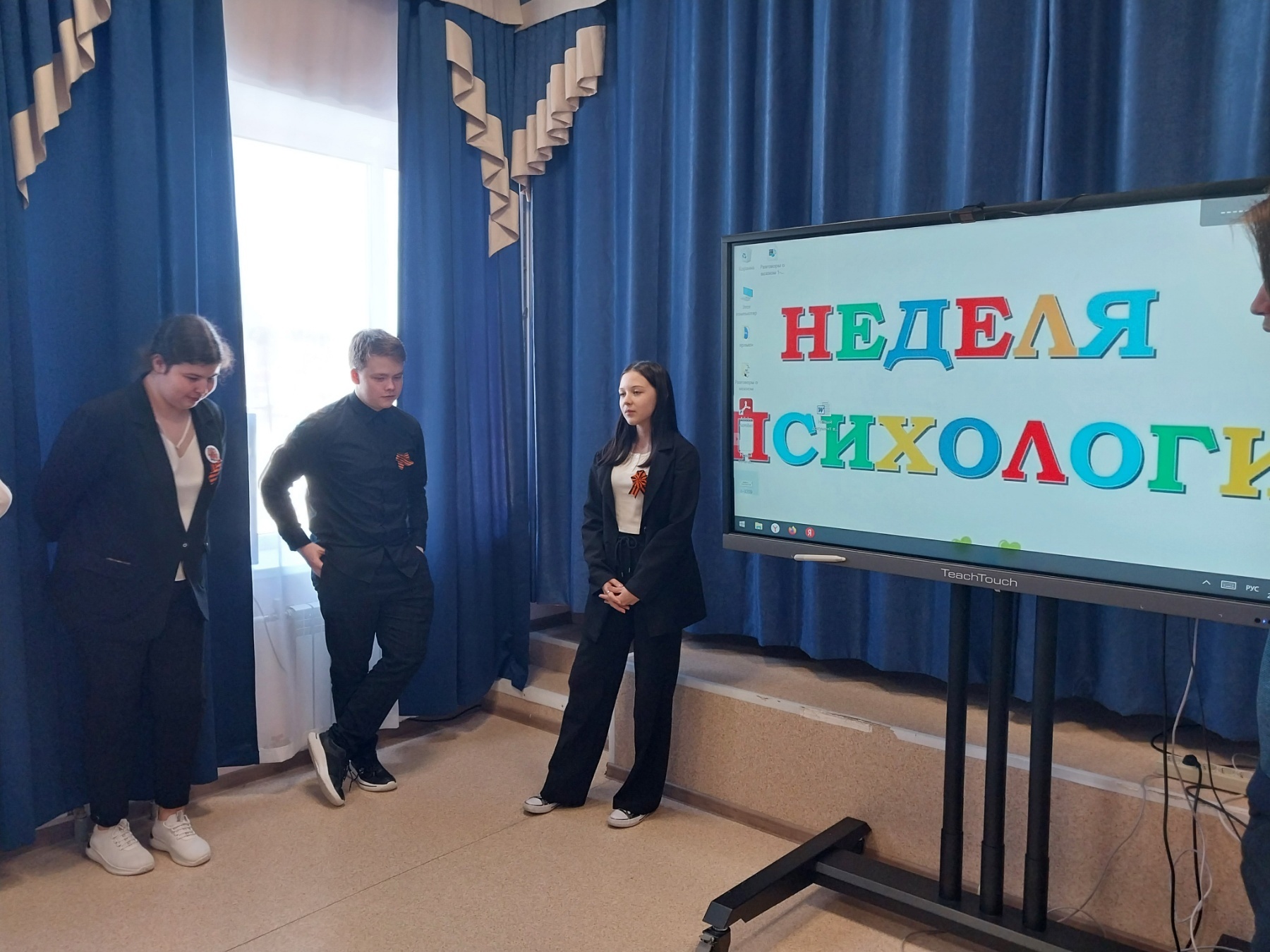 Открытие недели психологии прошло под девизом: "Много доброго можно сделать, если у тебя хорошее настроение" (Никулин Ю.) В этот день прошли экспресс-опросы «Что бы вы хотели изменить в нашей школе?; Акция «Дружные ладошки Добрых Дел»; тренинг «Экзамен без стресса».В рамках недели проводилась работа с участником специальной военной операции с применением приемов саморегуляции, снятия тревоги. Использованы медиативные техники (дыхательная гимнастика, арт-терапия, песочная терапия и т.д.).